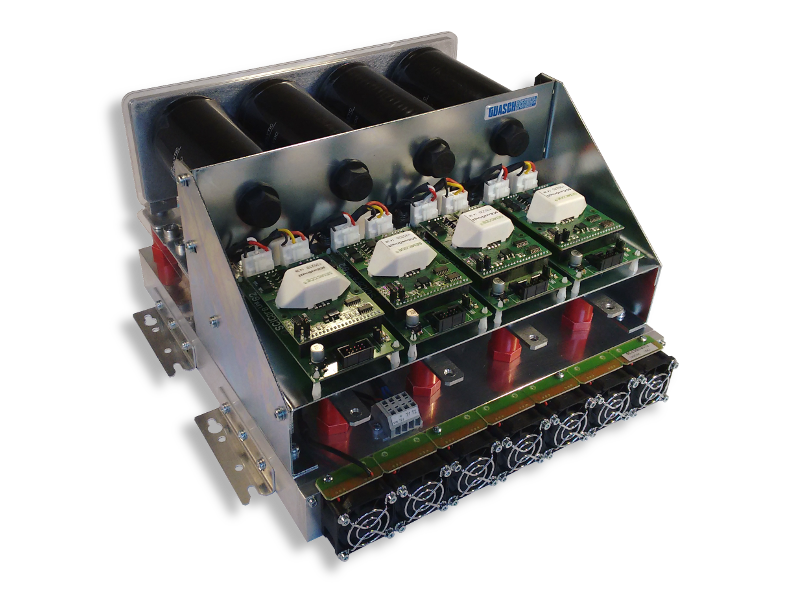 Completely new modular designs of 1/2B2I topology with EconoDUAL modules, easily stackable permitting a neat way to fully customize your designs using a single reference of IGBT+DC-Link stack which also includes the driver systems and all the needed current and voltage sensors. We can also develop and integrate any of our designs and medium power IGBT stacks on a cabinet along all the protections and electronics surrounding the main power stack to offer a complete turnkey solution. Please do not hesitate to ask us about your design or application needs. |